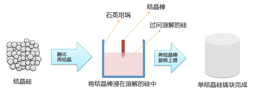 第一個(gè)工藝是鑄塊。鑄塊是制作晶圓的基板。將結(jié)晶硅和硼酸(B),磷(P)一起放入石英坩堝中,高溫溶解。將結(jié)晶棒浸入溶解的硅液面,一邊旋轉(zhuǎn),一邊慢慢的向上提起,單結(jié)晶鑄塊完成,并且其原子配列和結(jié)晶棒相同。