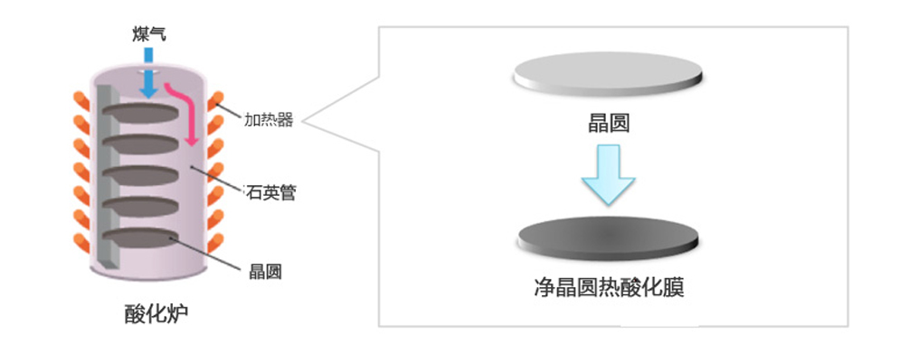 在晶圓表面酸化過(guò)程中,形成通過(guò)熱處理產(chǎn)生的優(yōu)質(zhì)表面酸化膜。酸化設(shè)備主要有縱型爐,橫型爐和RTP設(shè)備。通過(guò)酸化爐加高溫度(約800℃以上),在流入混有氧的煤氣,形成酸化膜