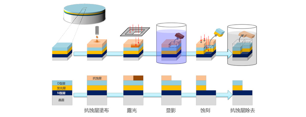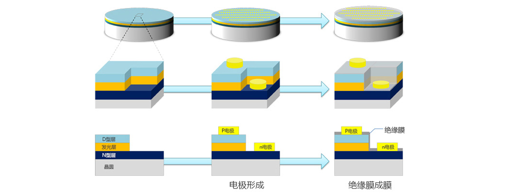 這個過程是制造LED的核心過程。2014年的藍色LED研究獲得了諾貝爾獎,之所以獲獎是因為經(jīng)此過程,LED的質(zhì)量得到了顯著改善,使得制造實用藍色LED成為可能。獲獎的原因之一是,正如這里所提到的,通過采用一種稱為雙流法的方法,用兩種原料氣體以供晶體生長,因此制造出更優(yōu)質(zhì)的晶體。此外,p型層的激活,低溫緩沖層等LED的晶體生長膜方法,在許多技術(shù)的積累之上實現(xiàn)了制造出本世紀的藍光LED。